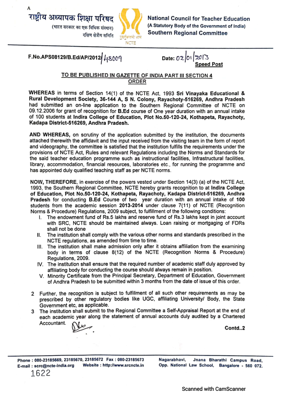 |::| Indira College of Education |::|